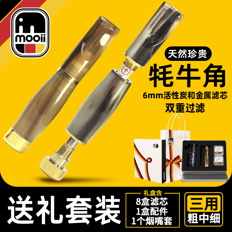 德国Mooii牛角烟嘴过滤器正品可换芯粗中细支三用卷烟焦油过滤嘴