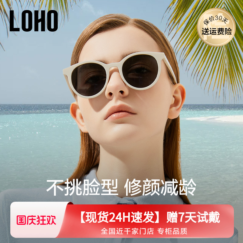 LOHO小圆框2025新款白框墨镜女偏光高级感太阳眼镜时尚潮流显小脸