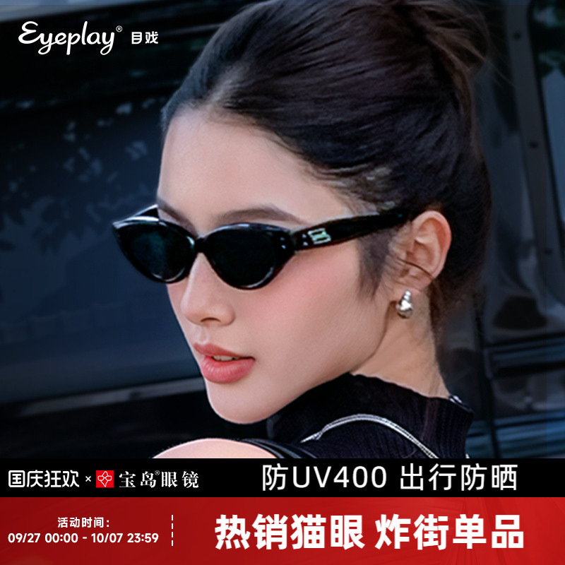 目戏2025新款猫眼墨镜女款高级感小框太阳眼镜户外防紫外线41006S
