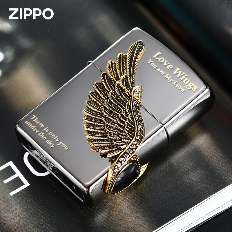 zippo打火机正品黑冰爱神之翼限量版送男友礼物专柜官方旗舰煤油