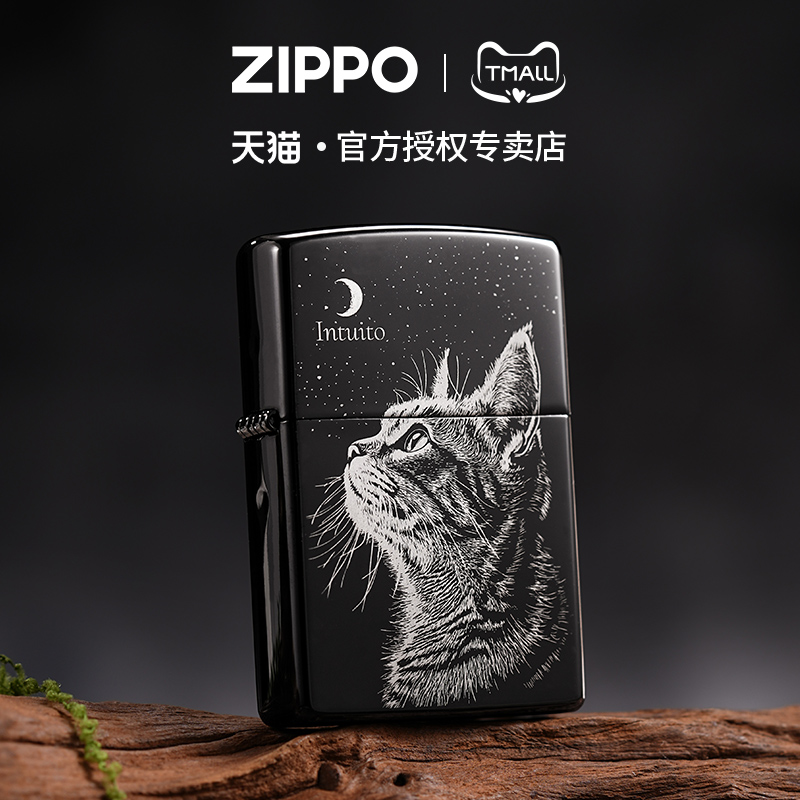 zippo打火机星空猫咪官方正品黑冰镜面之宝打火机可爱个性防风