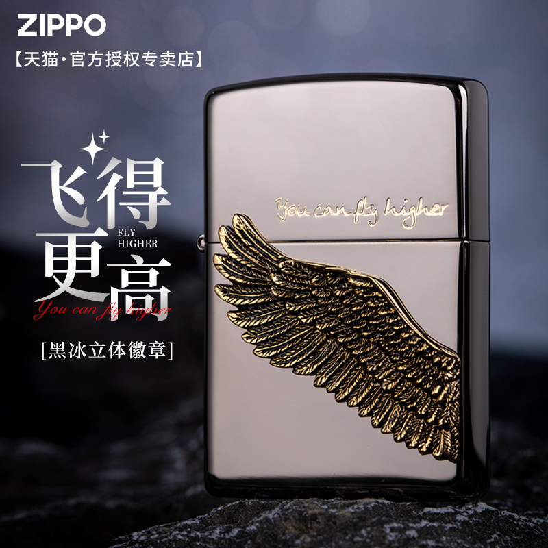 zippo打火机飞的更高天使之翼古银黑冰贴章正品原装男士礼物收藏