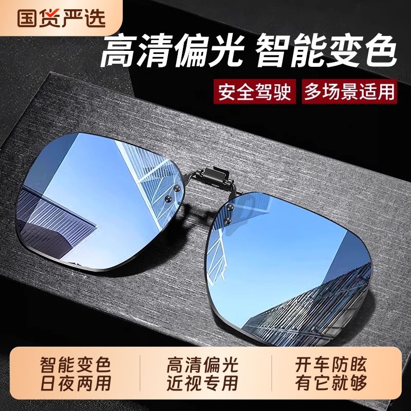 墨镜夹片男套夹在眼镜上的男士开车专用高清偏光镜可套太阳镜变色