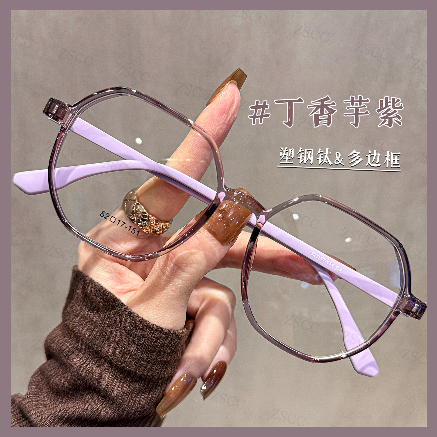 超轻塑钢钛香芋紫眼镜框女近视可配度数韩系氛围感眼睛镜架男潮搭