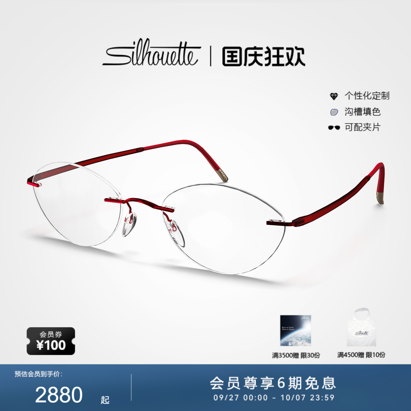 诗乐眼镜框女无框纯钛超轻气质小脸时尚近视Silhouette眼镜架4211