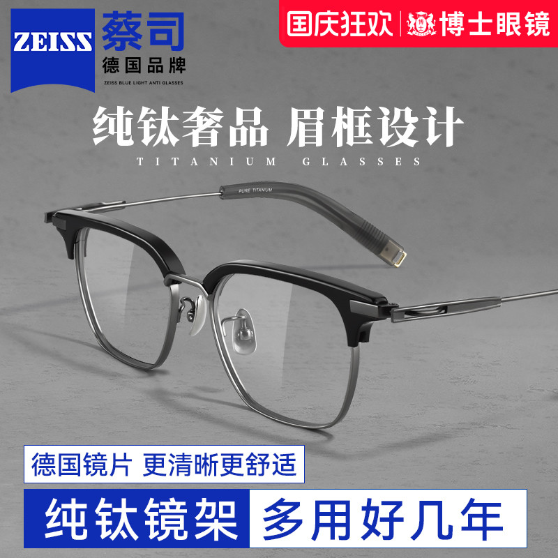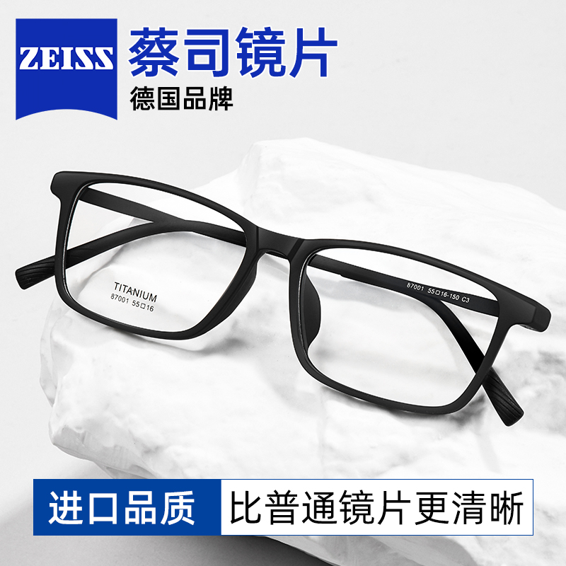 德国蔡司镜片超轻近视眼镜男款可配度数素颜方框橡皮钛眼镜框架女