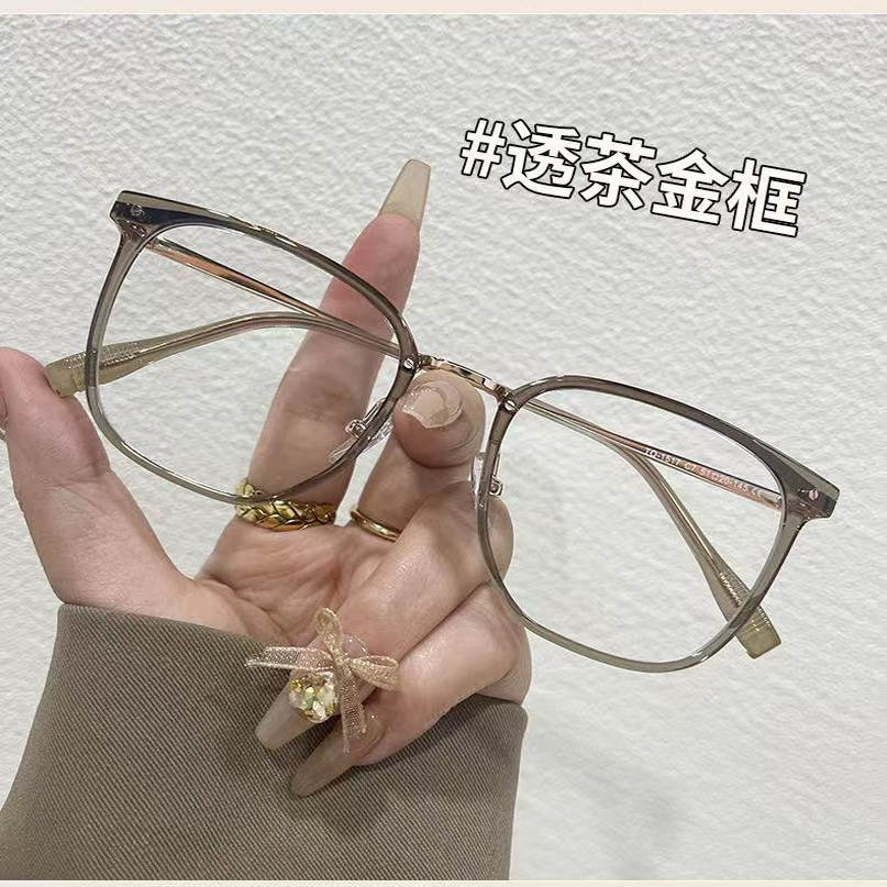 超大框摩卡棕方框眼镜女近视可配度数素颜显白大框显脸小眼睛镜架