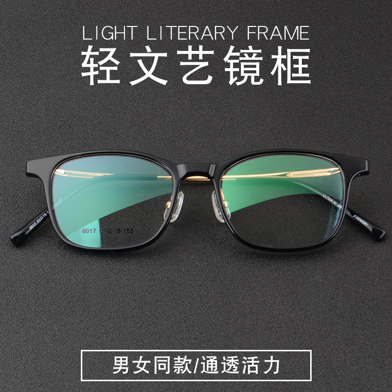 超轻方框板材11克无螺丝鼻托近视男眼镜框平光防蓝光配老花眼镜架