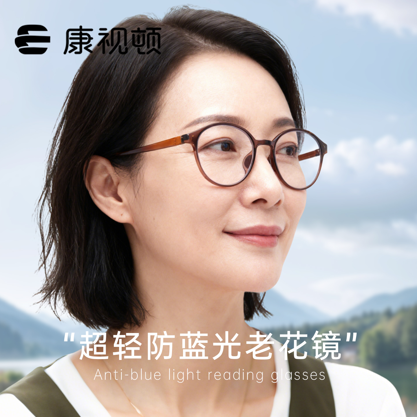 康视顿高清老花镜女超轻防蓝光高档中老年洋气老人眼镜时尚全框