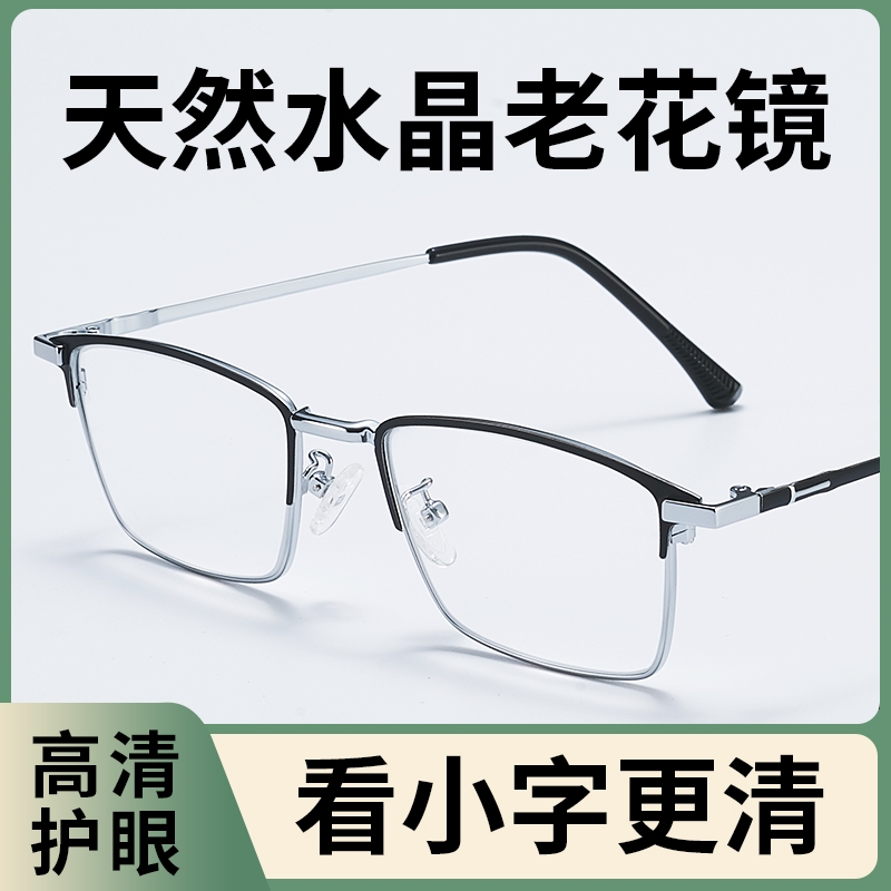 高档天然中老年老花眼镜男水晶石高清防蓝光老花镜女时尚半框超轻