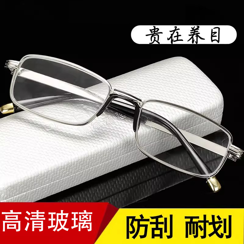 水晶石玻璃老花镜男中老年高清高档水晶玻璃石老花眼镜女黑框年龄