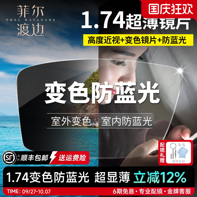 1.74超薄镜片变色超轻防蓝光眼睛1.67非球面高度近视眼镜耐磨配镜