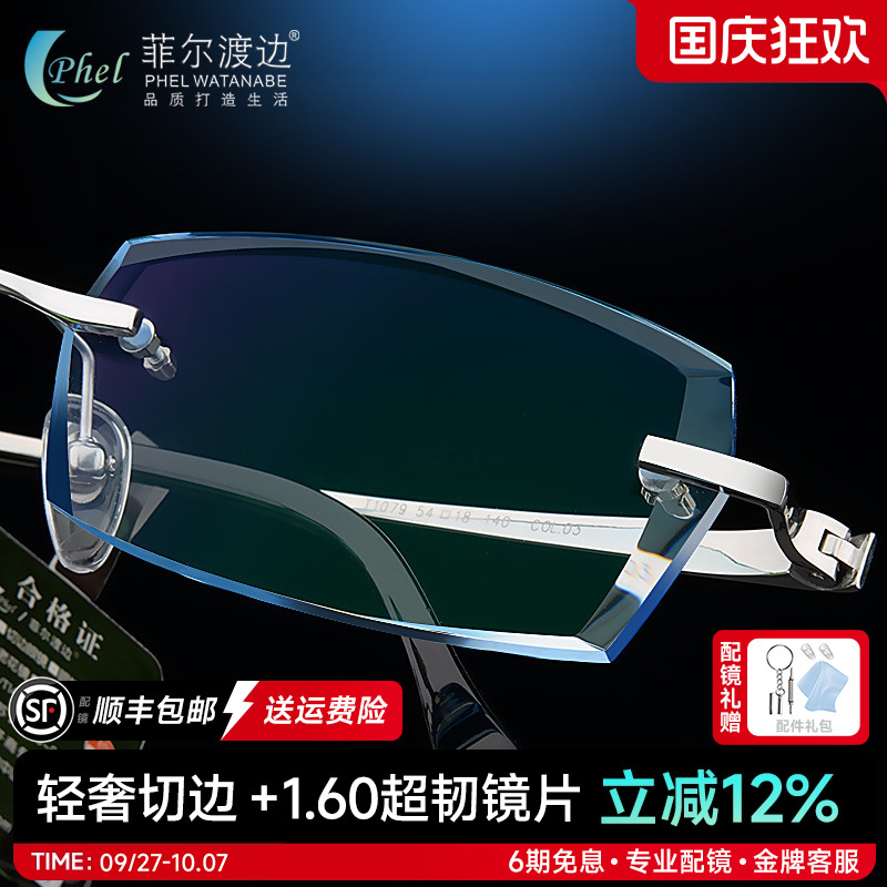 钻石切边眼镜男高度配有度数超轻钛架无框近视1.74大脸成品超薄Q7
