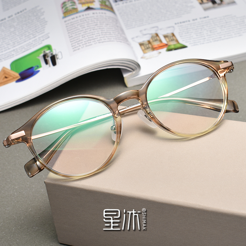 明月逸夫文艺圆形近视眼镜框可配有度数超轻板材眼睛架女款YF3314