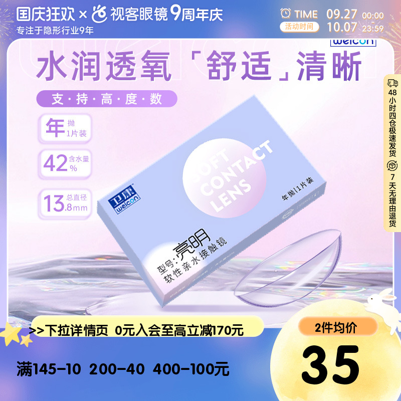 卫康亮明透明隐形近视眼镜年抛1片高度数舒适水润正品官方旗舰店