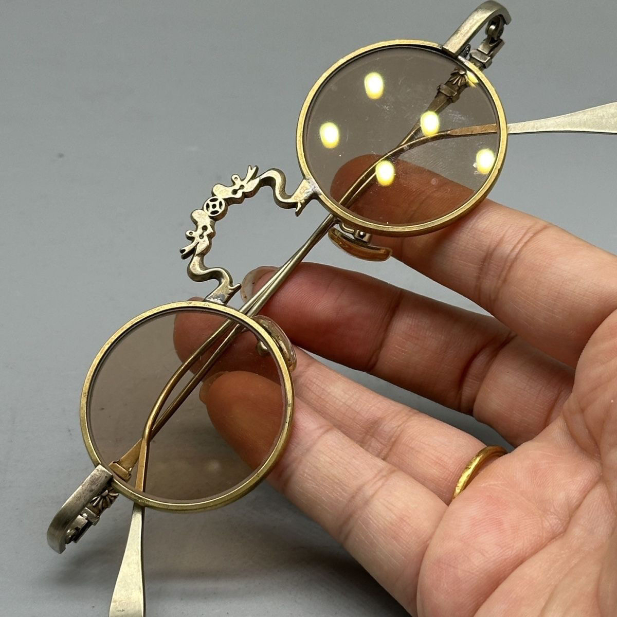 仿古民国时期水晶眼镜石头镜古玩纯铜镜框眼镜民国仿古墨镜太阳镜