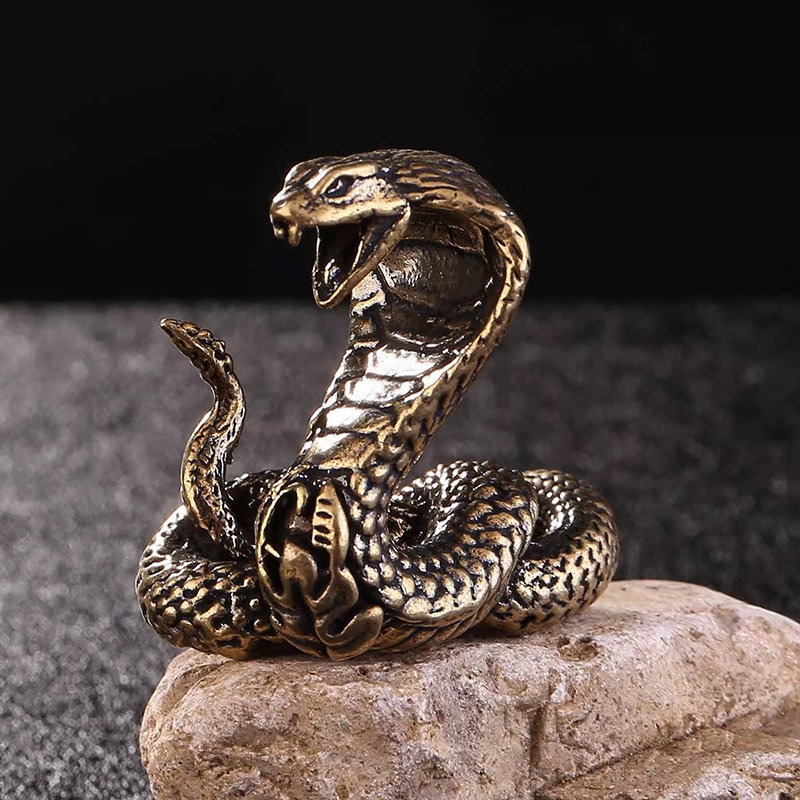 做旧仿古铜色眼镜蛇铜摆茶宠霸气蟒蛇王实心黄铜雕手把件桌面