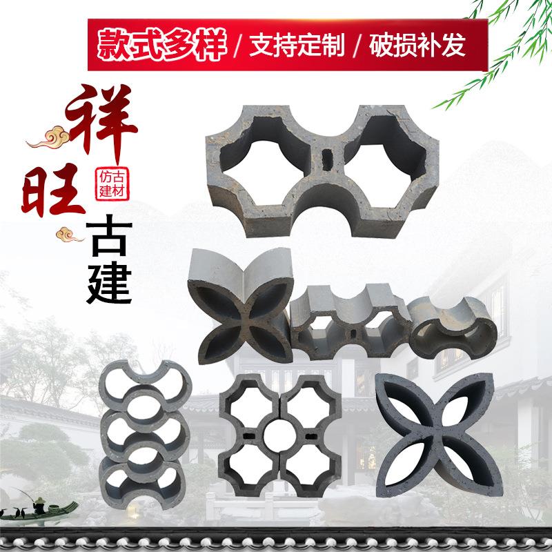 中式仿古庭院围墙四叶草窗花砖青瓦片花草眼镜四叶铜钱窗花装饰