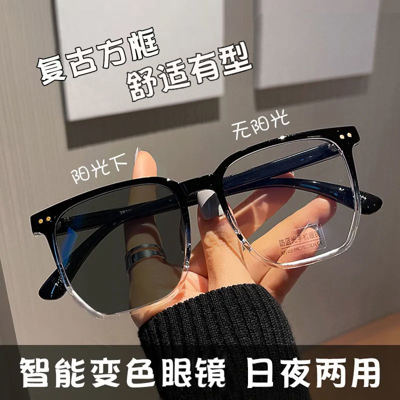 渐变框变色近视眼镜男帅气ins高颜值潮流大框防蓝光护目眼镜学生