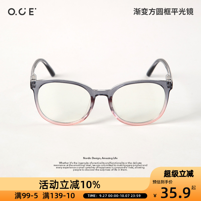 OCE复古大脸渐变色方圆框眼镜男款女款潮变色眼睛镜