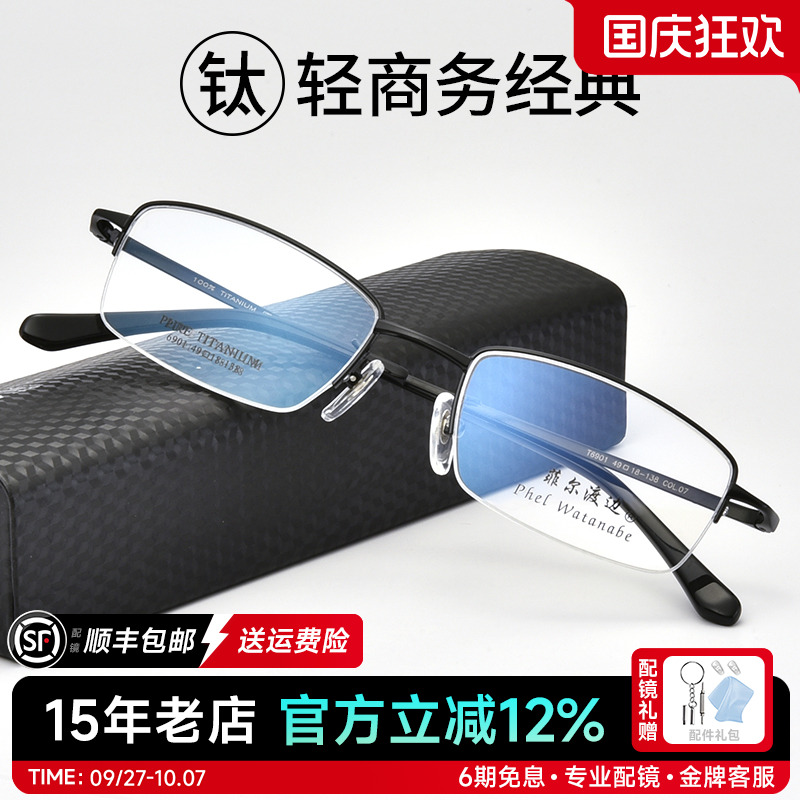 近视眼镜男纯钛小脸超轻半框眼镜框配度数蔡司旗下视特耐眼睛框架