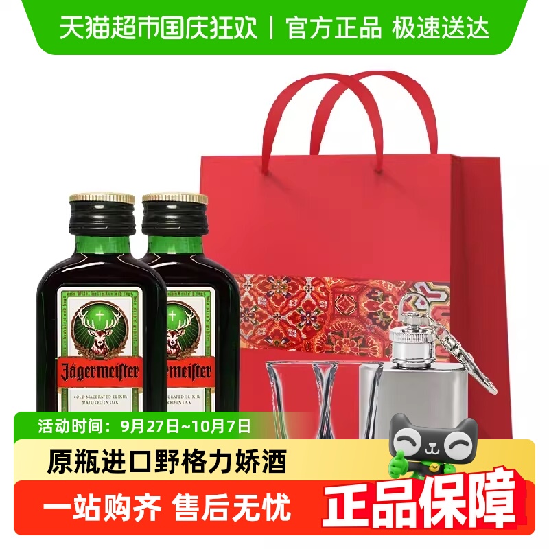 网红野格原瓶正品行货40ml*2瓶聚餐礼盒+杯子水杯*2个+小酒壶