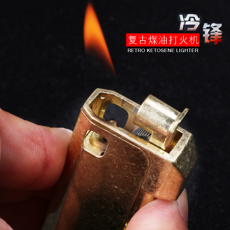 首领煤油打火机纯铜防风复古齿轮联动侧滑点火送男友生日礼物