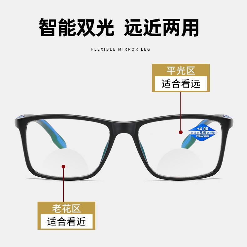 2025新款远近两用双光老花眼镜防蓝光高清老花镜男女框时尚休闲镜