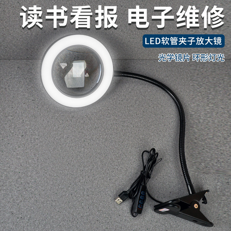 PDOK带LED灯放大镜高清玻璃镜片老人阅读看报绘画学习手机电子钟表主板维修焊接工作台珠宝首饰古董灯鉴定用