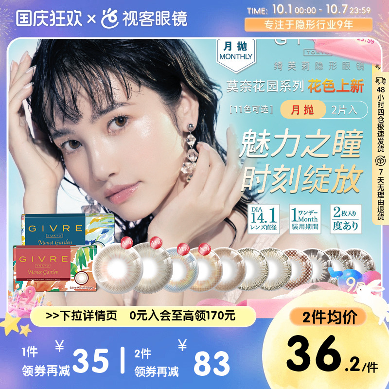 日本givre美瞳月抛绮芙莉大直径混血隐形眼镜1片*2盒女学生旗舰