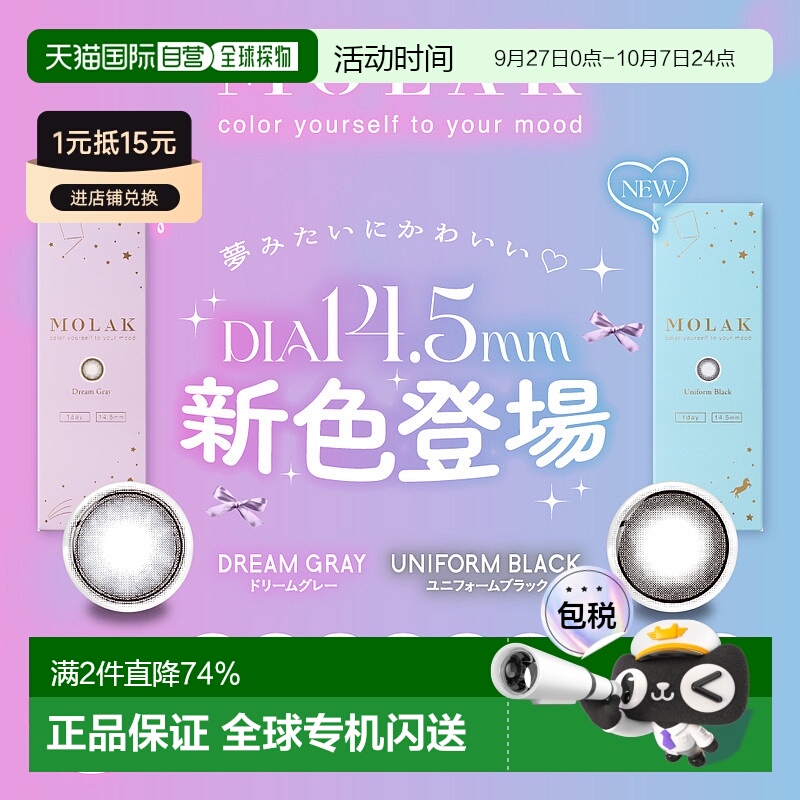 巅峰72h!LILMOON日本003極薄美瞳日抛10片彩色隐形眼镜心动格雷