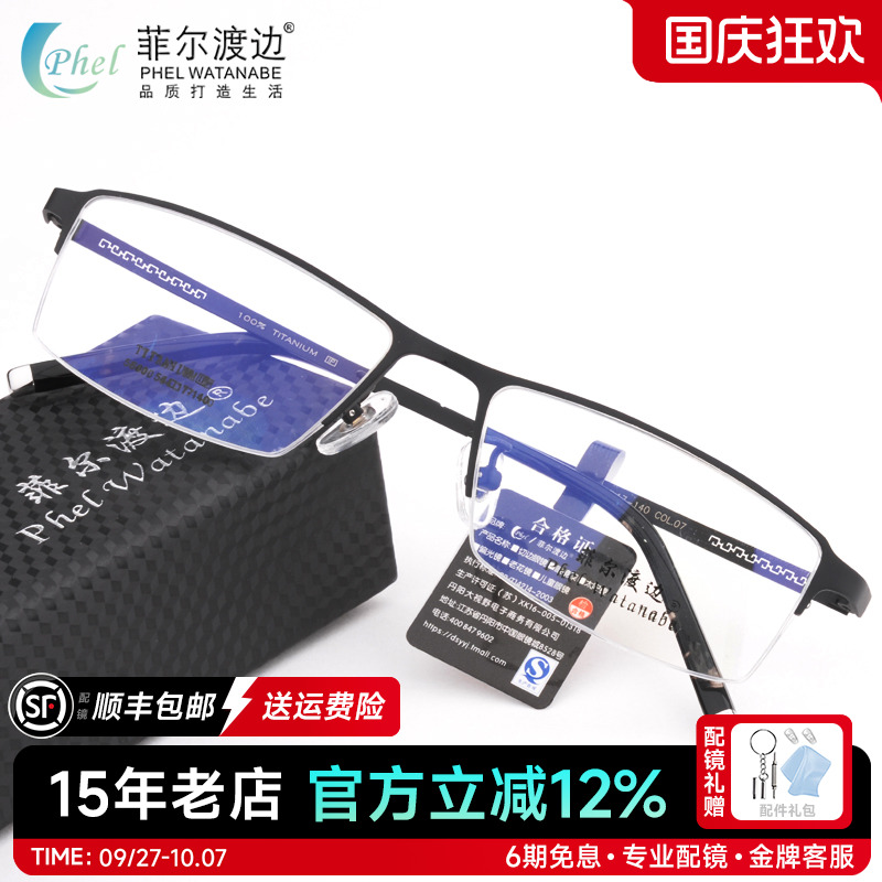 纯钛眼镜架半框近视眼睛框男超轻商务大脸舒适配近视变色镜片成品