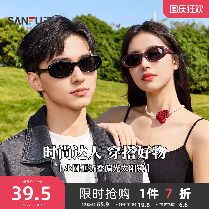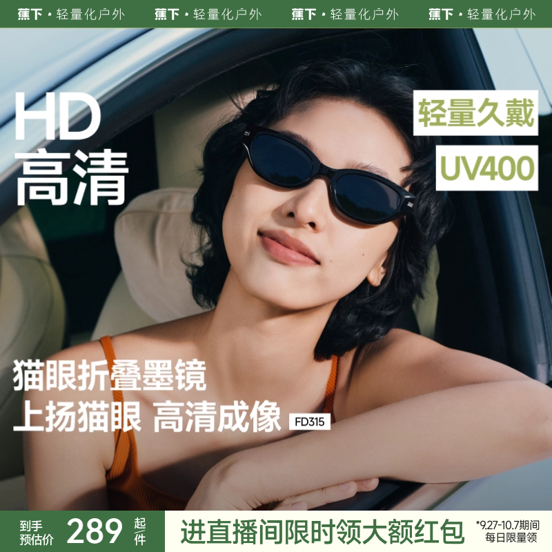 蕉下椭圆小框猫眼墨镜女款复古偏光防紫外线时尚个性折叠太阳眼镜
