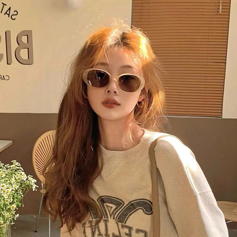 2025新款韩系时髦书呆子小椭圆墨镜防紫外线太阳眼镜时尚女个性潮