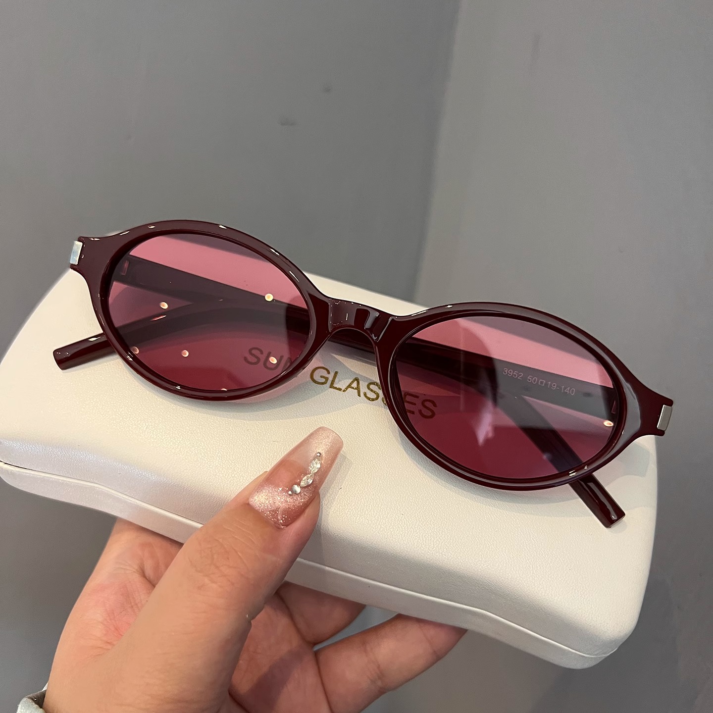 复古椭圆红色框猫眼高级感gm太阳眼镜方圆脸显瘦防紫外线墨镜女潮