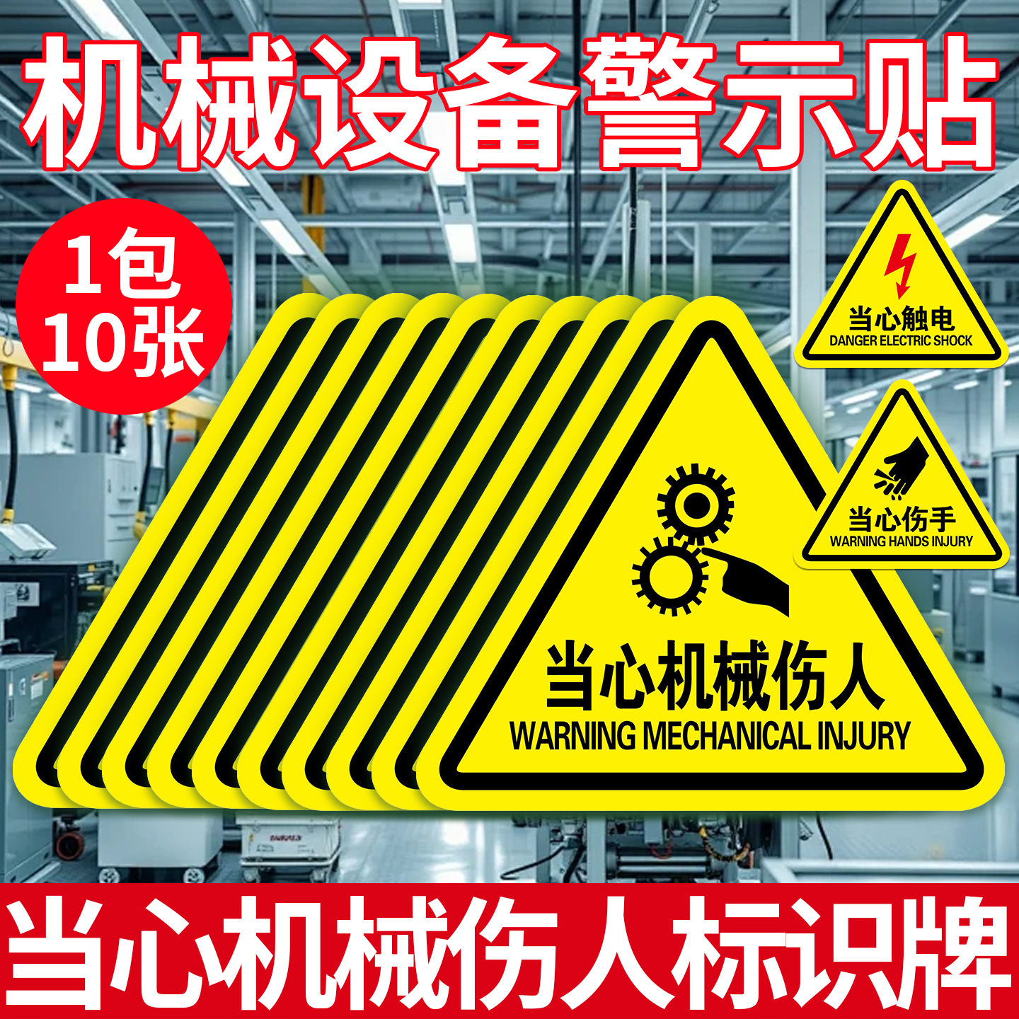 当心机械伤人标识牌警示贴小心触电工厂生产车间机器设备注意安全温馨提示牌有电危险请勿触摸贴纸标志告示牌