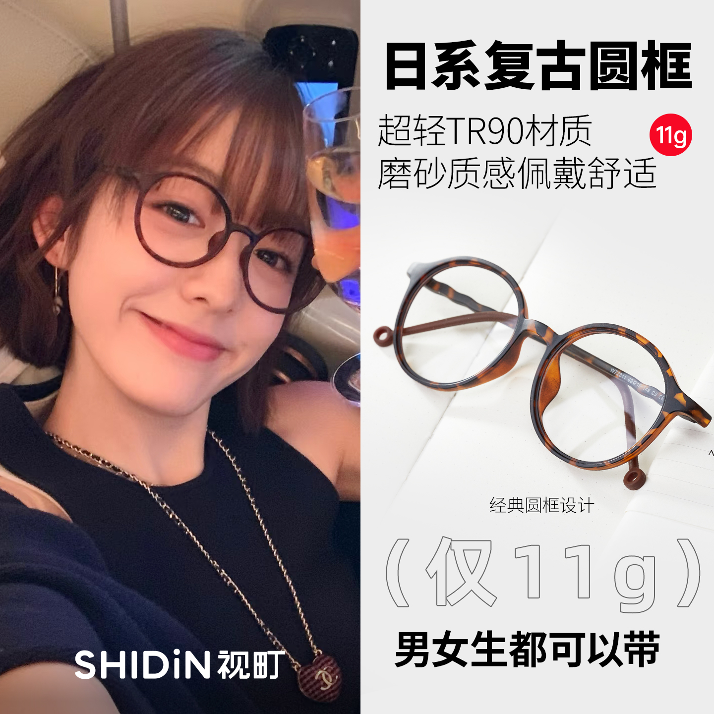 日系圆框超轻复古文艺眼镜框女高级感玳瑁可配度数近视圆形眼镜架