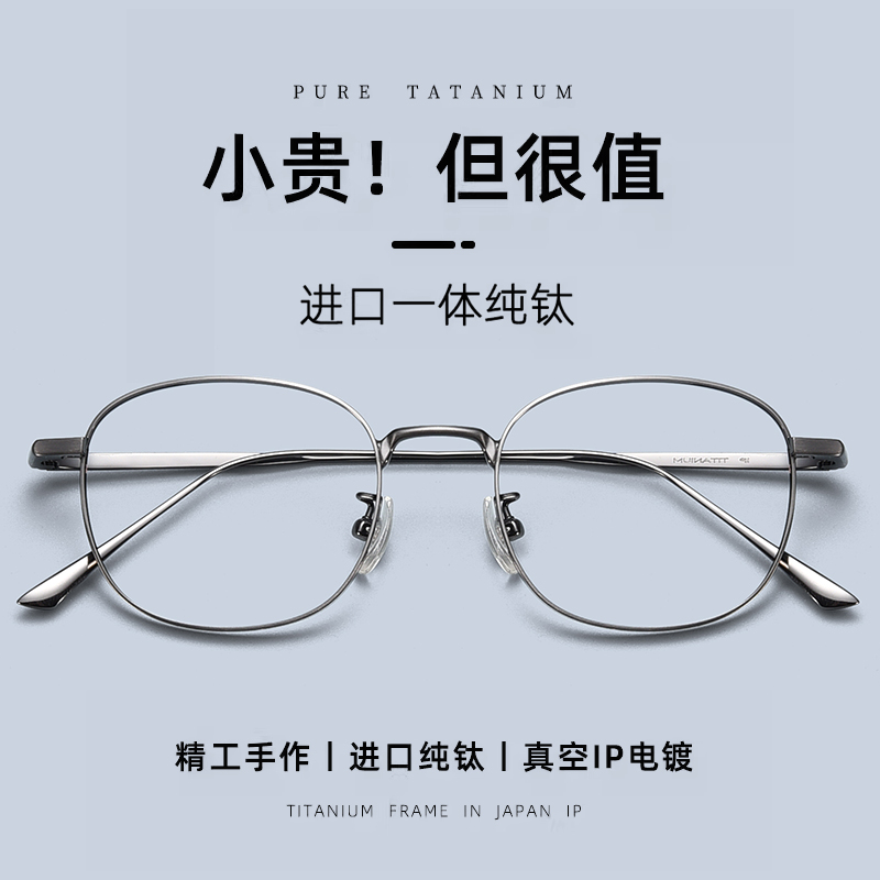 超轻纯钛近视眼镜男可配度数防蓝光眼睛架女椭圆框文艺高级感素颜