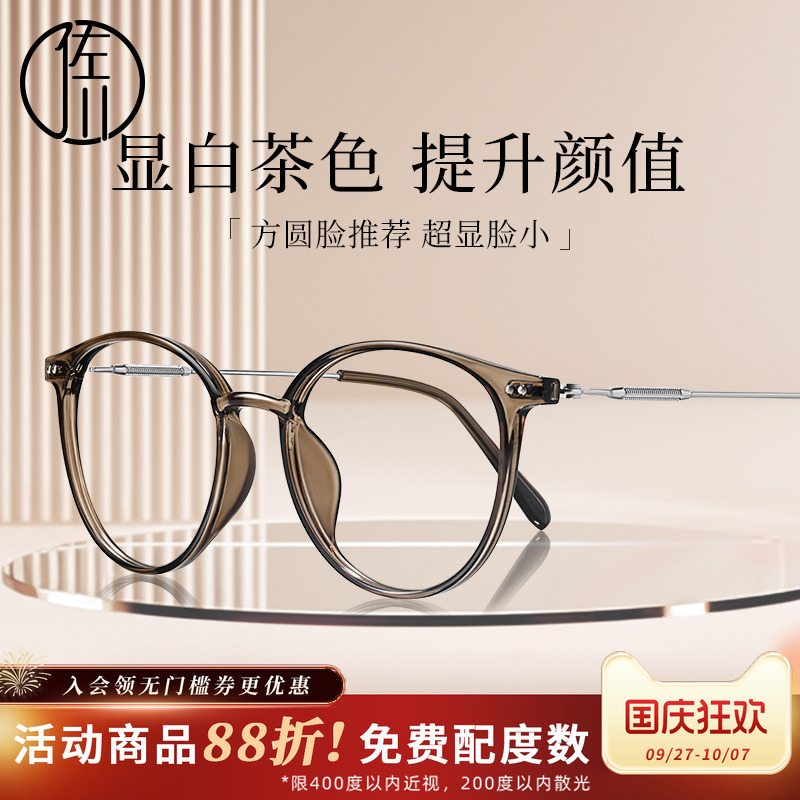 超轻茶色近视眼镜女可配度数防蓝光素颜大脸显瘦文艺眼睛框架丹阳
