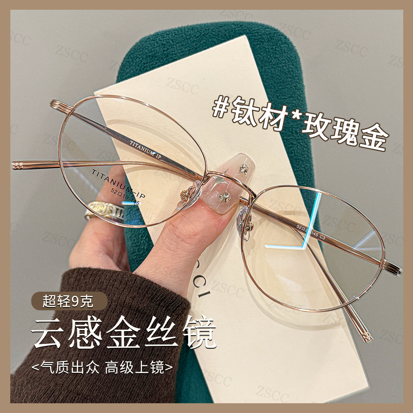 高级感金丝眼镜女小框可配近视有度数超轻素颜文艺长方形眼睛框架