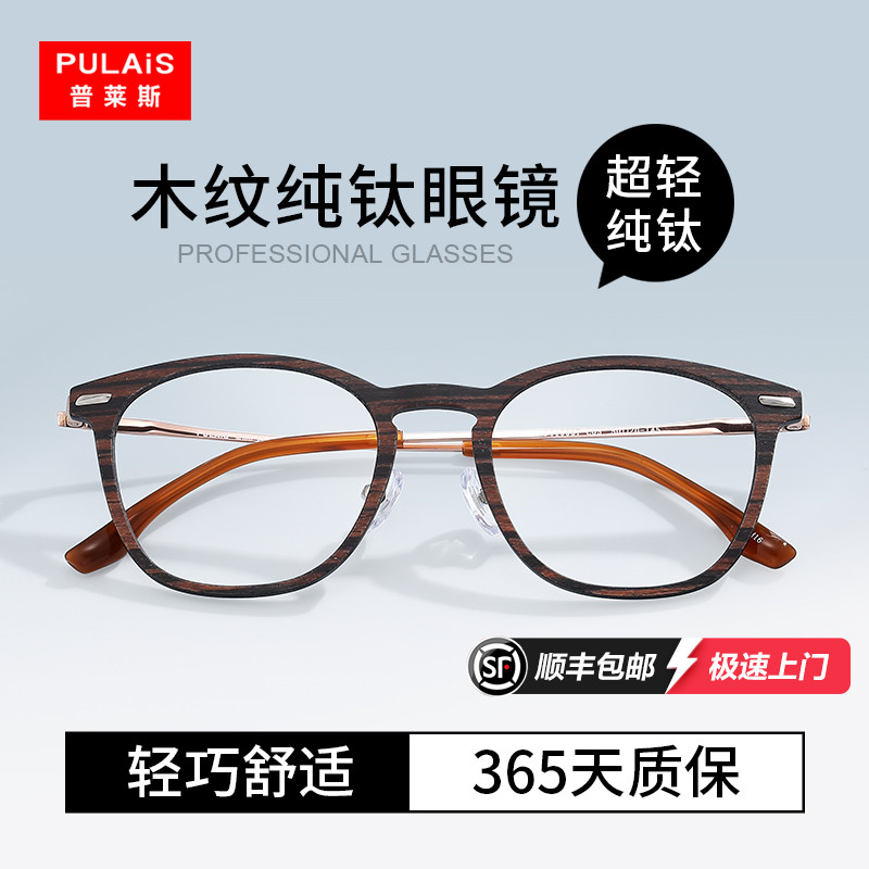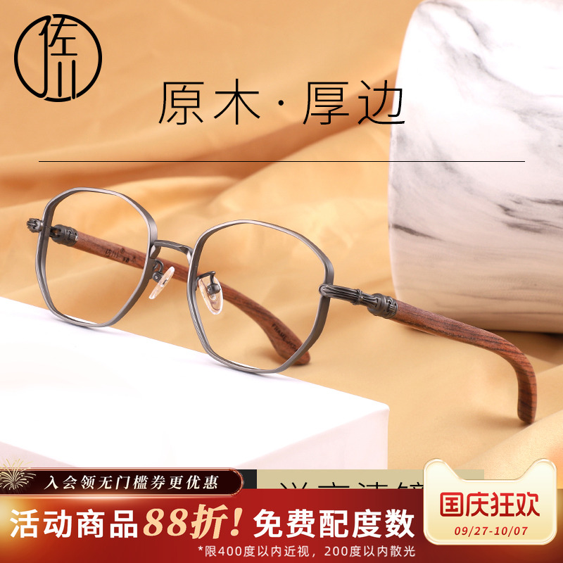 佐川纯钛厚边原木眼镜框女近视镜圆脸木质眼镜架男可配有度数镜片