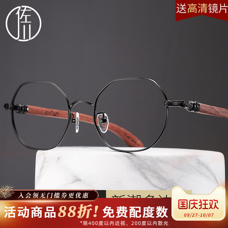 佐川纯钛眼镜框男款潮近视可配度数圆脸木质眼睛框镜架女复古文艺