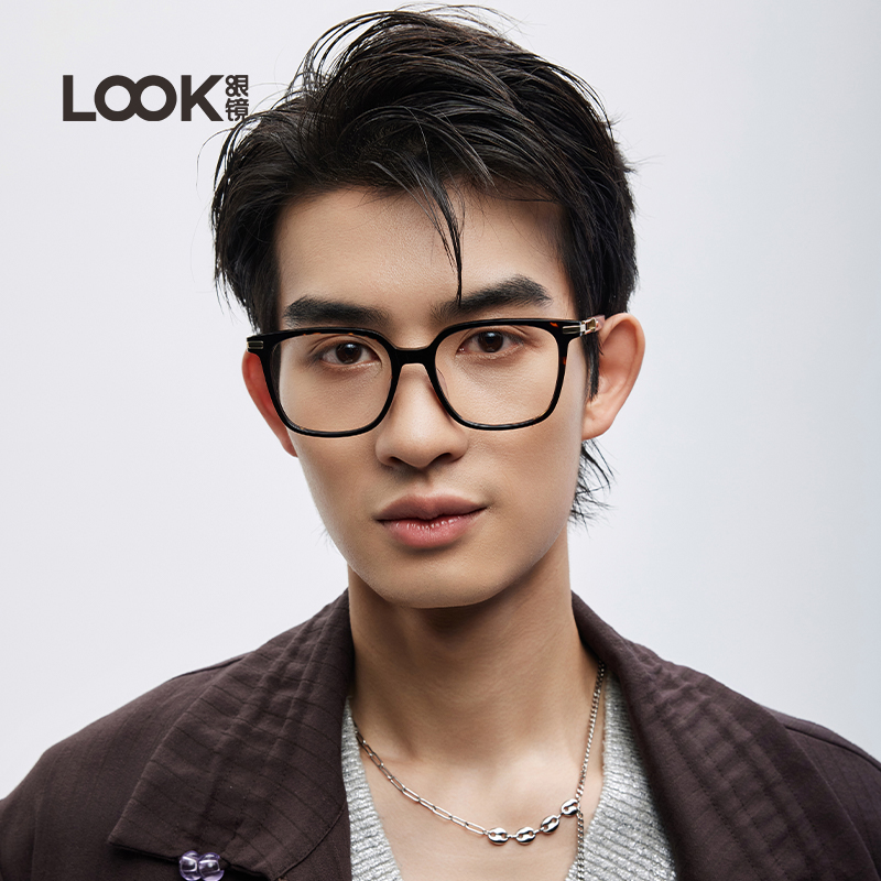 LOOK玳瑁色板材眼镜框女木质镜腿复古眼镜架素颜超轻男高级感