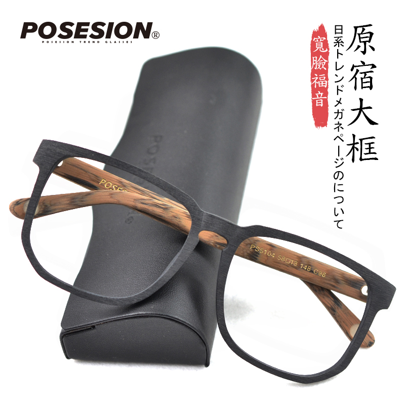 POSESION复古大框眼镜架黑框双梁木质板材眼镜框女大脸近视眼睛男