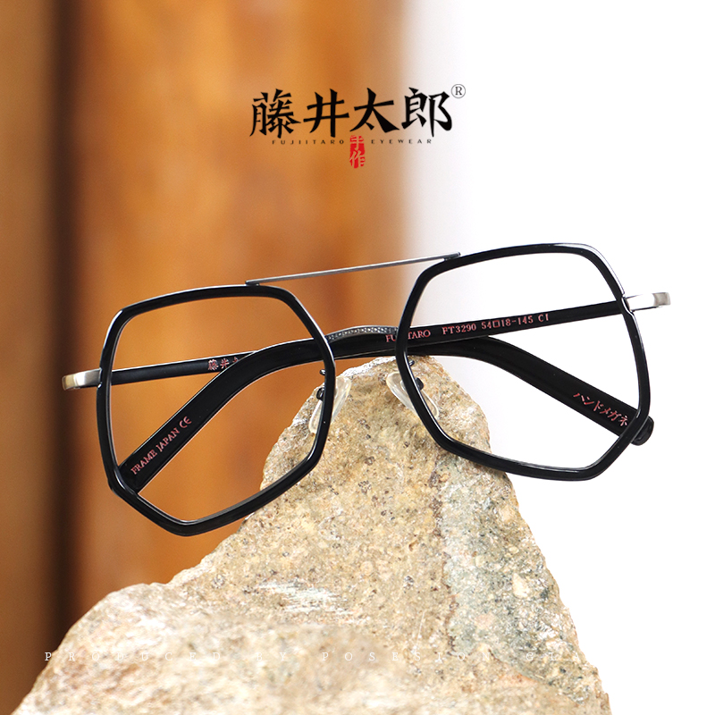 藤井太郎复古方形大框木质眼镜架男潮黑框近视眼镜框大脸可配镜片