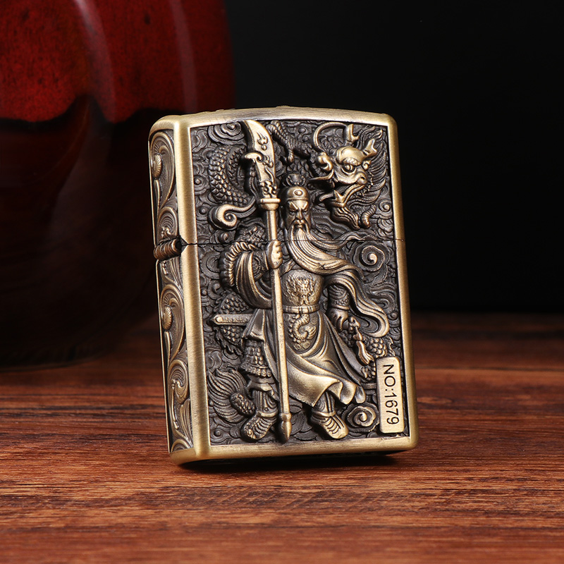 Star恒星金属煤油打火机复古砂轮防风创意个性浮雕盔甲关公送礼