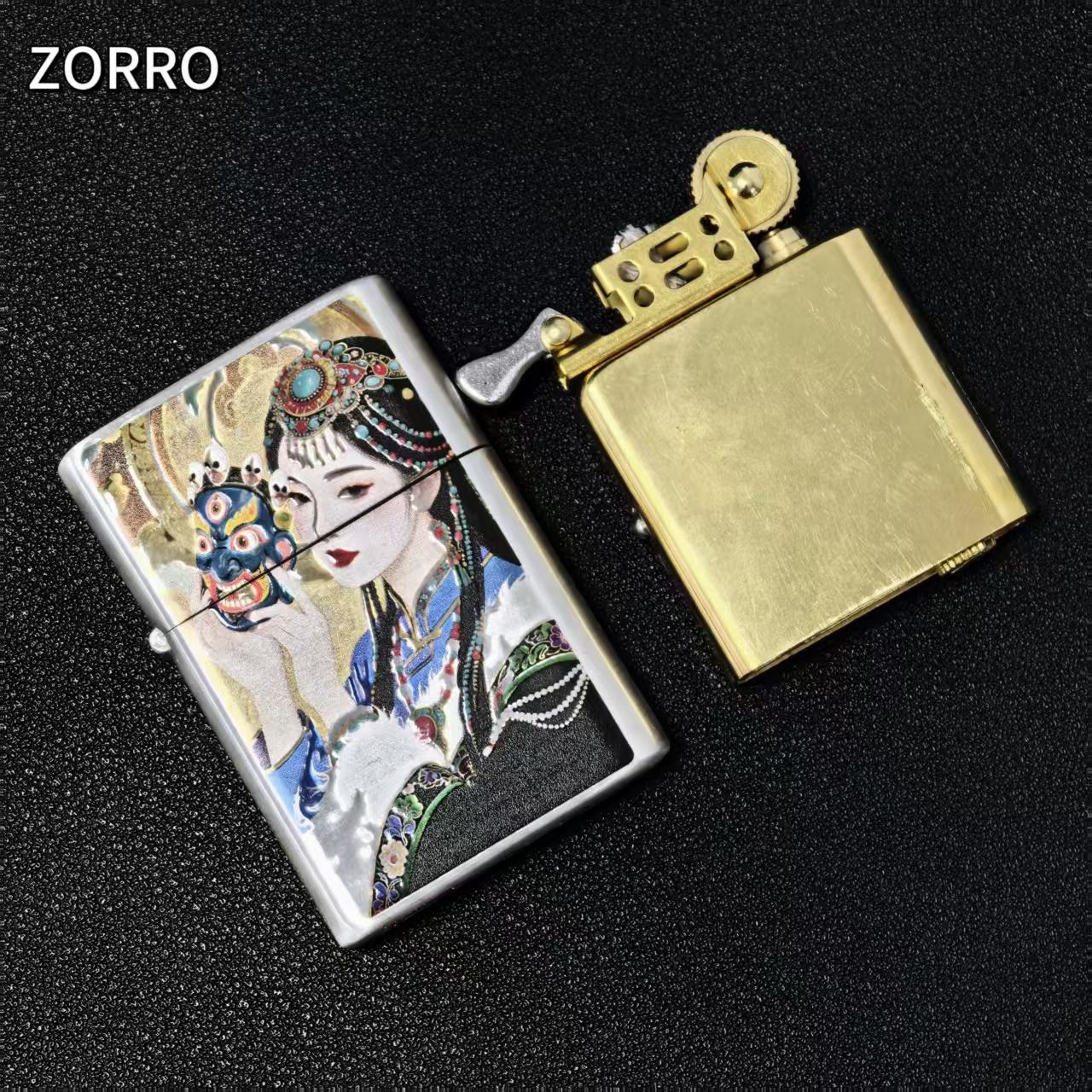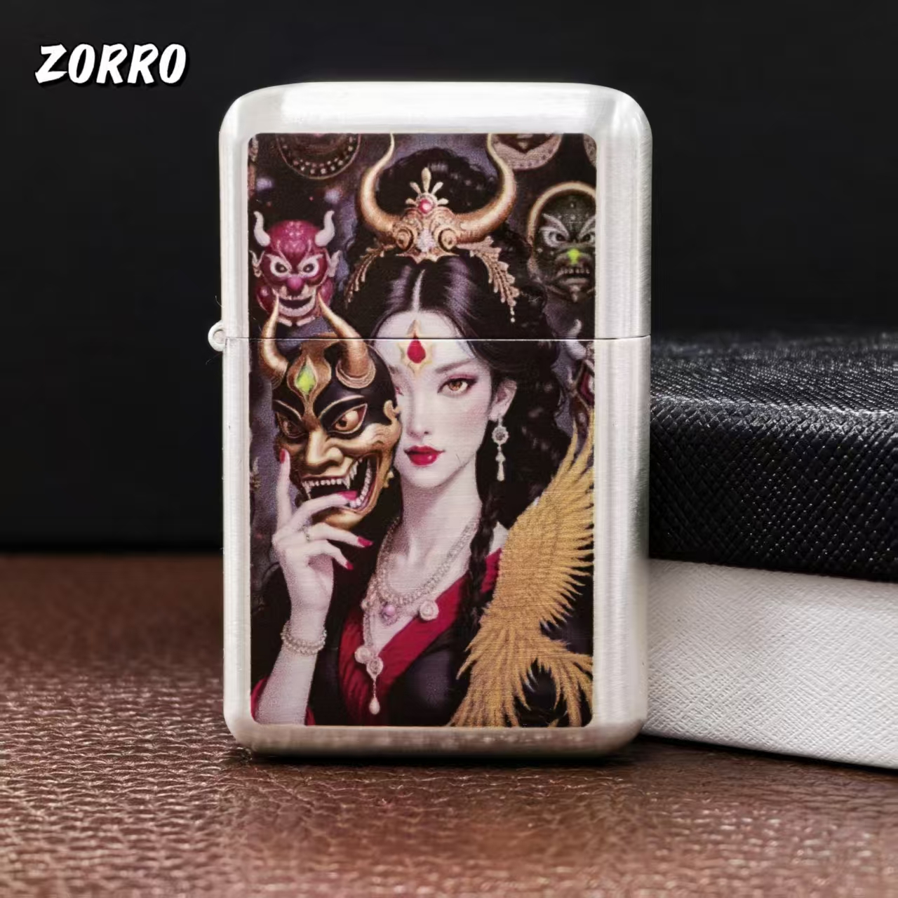 ZORRO佐罗825超薄包银拉丝傩面煤油打火机双头怪煤油机送礼