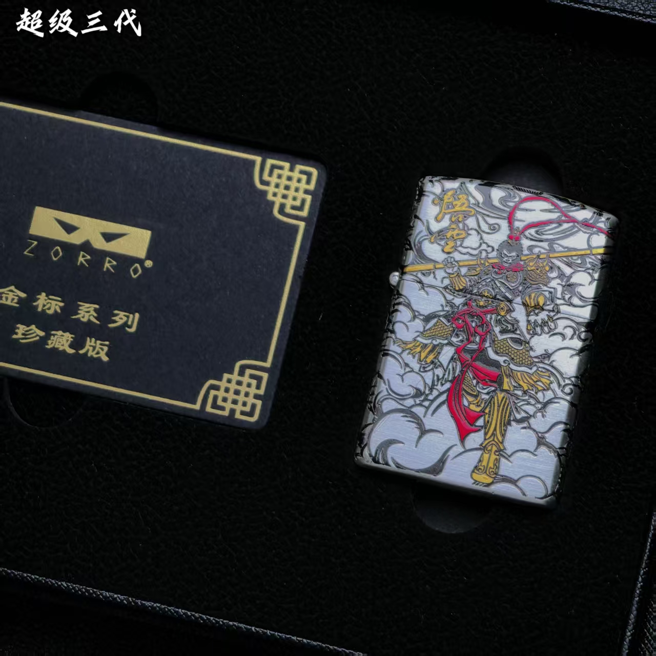 佐罗ZORRO佐罗超级三代包银珐琅彩黄财神煤油打火机三代煤油机