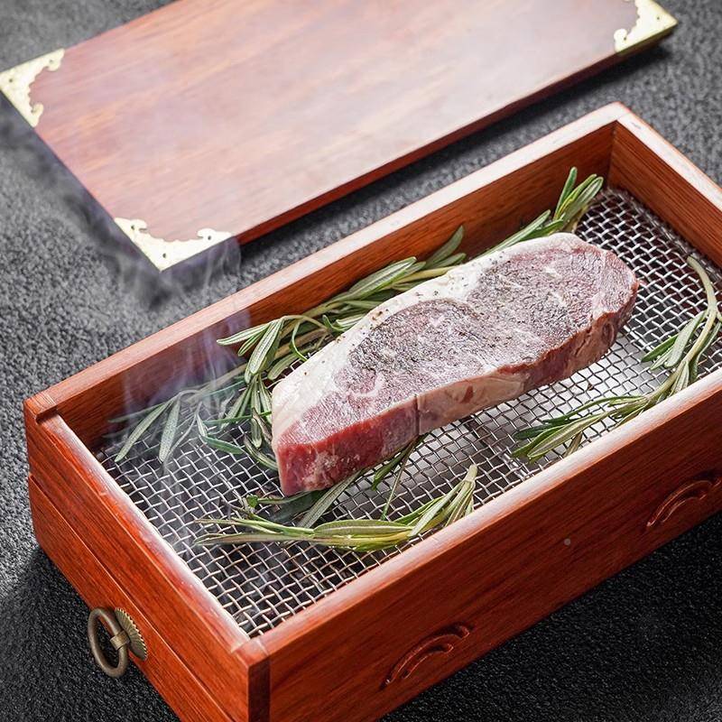 西炭烟熏肉盒烤牛熏排盘实木熏盒子木质特色创意烟木盒碳火烤肉餐