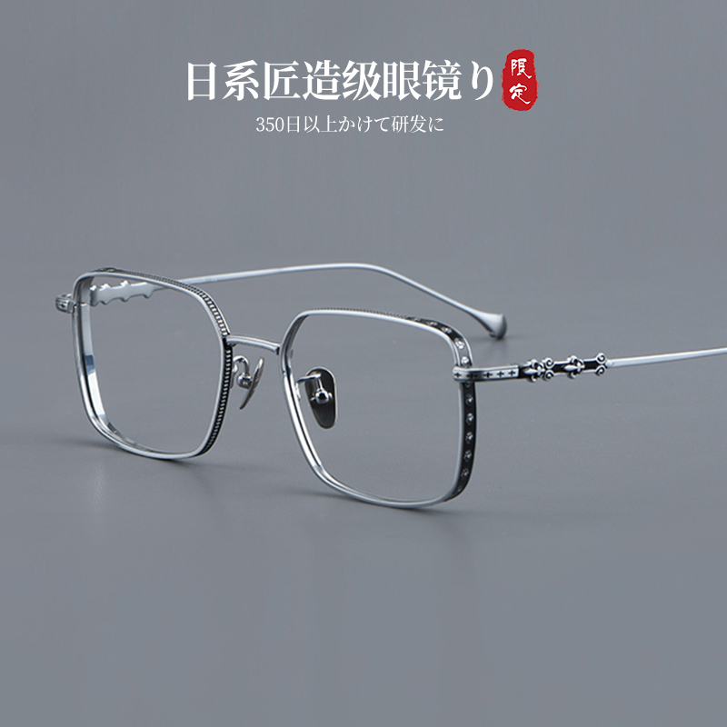 日系手工纯钛近视眼镜框男款高级感复古雕花大脸高端设计师眼睛架